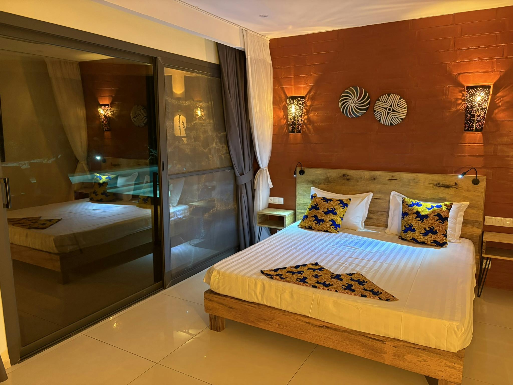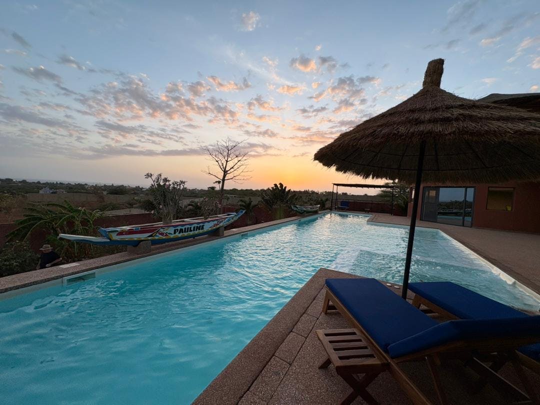 Private One-Bedroom Villa with Rooftop Terrace For couples or solo travelers looking for peace, comfort, and privacy, our private one-bedroom villa is the perfect escape.This charming 70 m² villa includes a fully equipped kitchen, a bright bedroom, and a bathroom with double showers—ideal for unwinding after a day at the beach or exploring the area.The highlight? A private rooftop terrace with open views of the surrounding landscape—perfect for morning yoga, stargazing, or sipping a quiet glass of wine at sunset.Guests also have access to the shared 20-meter pool and jacuzzi, located next to the main villa. Quiet, intimate, and surrounded by nature—this is your private oasis on the Petite Côte.The Entire Estate – Full Private Rental of Both Villas Planning a family reunion, a retreat, or a stay with friends? Take over the entire estate, combining both villas for the ultimate in space, comfort, and exclusivity.Together, the two villas offer 8 bedrooms, multiple kitchens, expansive living spaces, and stunning 360° views of the lagoon, the Atlantic, and Guereo village.The main villa includes a dramatic open-plan living room, a fully equipped kitchen, and direct access to a 20-meter pool and jacuzzi. The smaller villa adds an extra layer of privacy with its own kitchen, double-shower bathroom, and rooftop terrace.Enjoy complete access to the pool, the pétanque court, and the surrounding natural beauty. This is a rare opportunity to experience Senegalese luxury living in full privacy, with enough space for everyone to feel at home.The Luxury Loft – Main Villa (2 Bedrooms) Discover our stunning Luxury Loft, part of a villa nestled in the heart of the Senegalese countryside, offering 360-degree panoramic views of the lagoon, ocean, and the peaceful village of Guereo.This spacious loft is perfect for a family, small group of friends or 2 couples, offering 2 bedrooms, each with its own private en-suite bathroom and breathtaking views of the pool, lagoon, or ocean. Can accommodate up to 6 guests with 3 in each bedroom or possibility to have 2 person sleeping on the mezzanine.Enjoy the expansive open-plan kitchen and relax in the dramatic 9-meter-high living room, which opens directly onto a 20-meter pool and jacuzzi. These outdoor spaces are shared only with one other small villa. A pétanque court is also available for guests.Whether you're cooking, swimming, or simply watching the sunset over the mangroves, the Luxury Loft offers space, elegance, and serenity.Deluxe Double Room 1 with Pool View Located on the ground floor of the Main Villa, just a short walk from the main activity, this room offers the perfect balance between easy access and tranquility.Authentic Decor: Experience the Senegalese character in the private bathroom, adorned with a striking red brick wall echoing the local earth. A unique detail for an immersive experience.Window onto peace: Enjoy a soothing view of the pool terrace and the gardens, bathed in the light and soft colors of the surrounding nature (baobabs, palm trees). Its slightly more discreet location ensures welcome quietude.Privileged Access: You benefit from direct access to the terrace, the magnificent 20-meter pool, and its jacuzzi (shared spaces).Leisure: The bar and the pétanque court remain easily accessible for your moments of serenity and Senegalese charmDeluxe Double Room 2 with Pool View Escape to an oasis of tranquility via this tranquil getaway, located just 500m to the lagoon, and 1.5km to the sea. Wake up to soothing sounds of nature and birds as you are surrounded by baobabs, palm, and mango trees. This room offers views of pool terrace, and nature and access to shared facilities including 20-meter pool, jacuzzi, and the pétanque court. There's also a spacious rooftop terrace, 2nd floor terrace for activities such as yoga, bbq or evening drinks overlooking the sea during sunset.Enjoy absolute comfort and spectacular views of the ocean and the shimmering lagoon at our lodge. Book your tranquil escape now and let the rhythm of the Senegalese nature and warm hospitality redefine relaxation.Deluxe Double Room 7 with lagoon, sea & garden view Escape to an oasis of tranquility here, which is 500m from the lagoon, and 1.5km to the sea. Located on the upper floor of the main villa, this suite is undoubtedly the room for panorama lovers. It is designed for wonder and serenity.Sea, lagoon and garden view: Treat yourself to the luxury of a stunning 180-degree view of the lagoon and the Atlantic Ocean that you can admire directly from your bed and balcony.Unforgettable sunset: Every evening, the sky puts on a show for you with superb sunsets, painting the horizon in warm colors—a breathtaking visual experience.Private terrace: Enjoy absolute tranquility on your private terrace, the perfect spot for a morning beverage or an evening drink facing the sea. We also have the hammock for those who want to laze outdoors.Premium comfort: The room features a private bathroom. The restaurant is conveniently located on the same level.Shared facilities: You'll have access to shared facilities including 20-meter pool, jacuzzi, and the pétanque court. There's also spacious rooftop and 2nd floor terrace for activities such as yoga, bbq or simply sitting with your drink at hand to admire the nature all around.Deluxe twin room with courtyard view near lagoon & sea This room within the main villa is located just 500m to the lagoon, and 1.5 km to the sea.Located on the ground floor of the main villa, room 3 is ideally positioned in our "family zone," with rooms nearby.The Family Choice: This room is perfect for children or friends when parents occupy Room 1 or 2. Its proximity to Room 4 also allows larger groups of friends, or children to stay nearby.Sleeping Flexibility: Perfectly adaptable to your needs, it features 120 cm twin beds that can be separated or easily combined together to form 1 large double bed for a couple.Courtyard view: Overlooking the back co