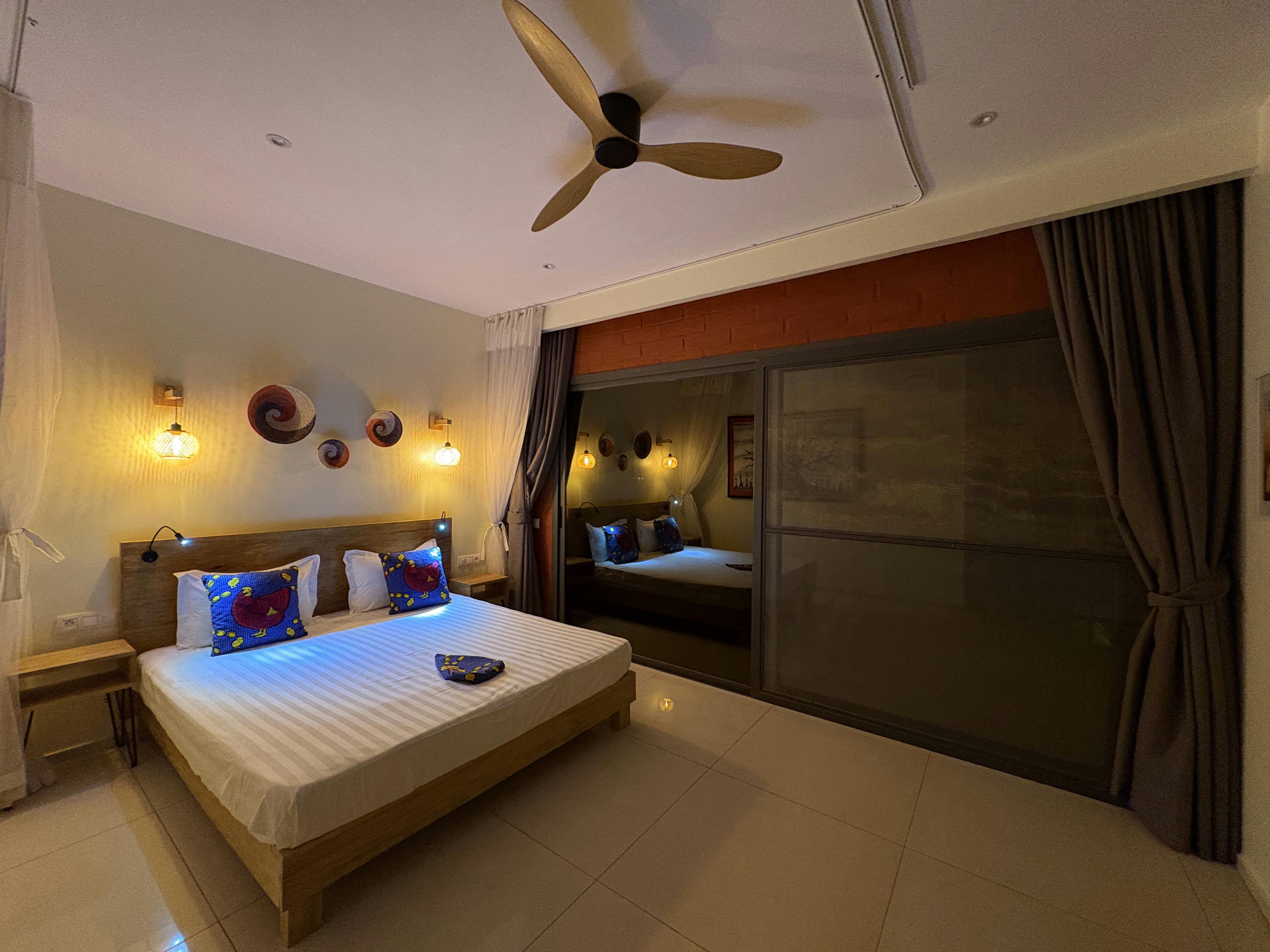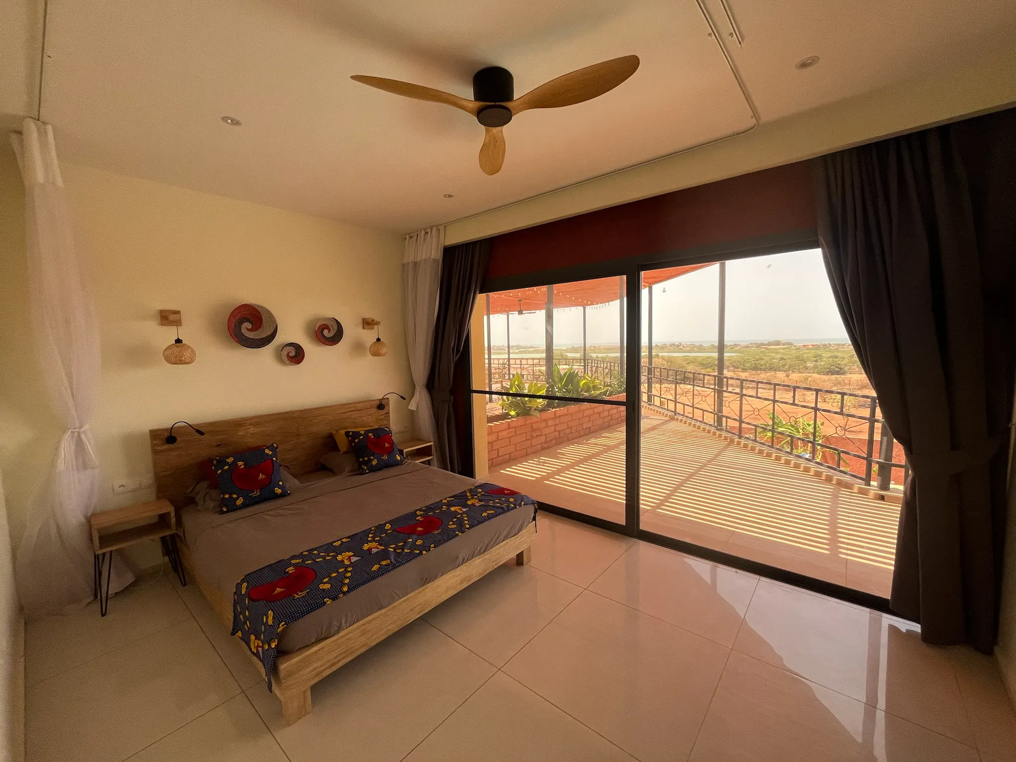 Private One-Bedroom Villa with Rooftop Terrace For couples or solo travelers looking for peace, comfort, and privacy, our private one-bedroom villa is the perfect escape.This charming 70 m² villa includes a fully equipped kitchen, a bright bedroom, and a bathroom with double showers—ideal for unwinding after a day at the beach or exploring the area.The highlight? A private rooftop terrace with open views of the surrounding landscape—perfect for morning yoga, stargazing, or sipping a quiet glass of wine at sunset.Guests also have access to the shared 20-meter pool and jacuzzi, located next to the main villa. Quiet, intimate, and surrounded by nature—this is your private oasis on the Petite Côte.The Entire Estate – Full Private Rental of Both Villas Planning a family reunion, a retreat, or a stay with friends? Take over the entire estate, combining both villas for the ultimate in space, comfort, and exclusivity.Together, the two villas offer 8 bedrooms, multiple kitchens, expansive living spaces, and stunning 360° views of the lagoon, the Atlantic, and Guereo village.The main villa includes a dramatic open-plan living room, a fully equipped kitchen, and direct access to a 20-meter pool and jacuzzi. The smaller villa adds an extra layer of privacy with its own kitchen, double-shower bathroom, and rooftop terrace.Enjoy complete access to the pool, the pétanque court, and the surrounding natural beauty. This is a rare opportunity to experience Senegalese luxury living in full privacy, with enough space for everyone to feel at home.The Luxury Loft – Main Villa (2 Bedrooms) Discover our stunning Luxury Loft, part of a villa nestled in the heart of the Senegalese countryside, offering 360-degree panoramic views of the lagoon, ocean, and the peaceful village of Guereo.This spacious loft is perfect for a family, small group of friends or 2 couples, offering 2 bedrooms, each with its own private en-suite bathroom and breathtaking views of the pool, lagoon, or ocean. Can accommodate up to 6 guests with 3 in each bedroom or possibility to have 2 person sleeping on the mezzanine.Enjoy the expansive open-plan kitchen and relax in the dramatic 9-meter-high living room, which opens directly onto a 20-meter pool and jacuzzi. These outdoor spaces are shared only with one other small villa. A pétanque court is also available for guests.Whether you're cooking, swimming, or simply watching the sunset over the mangroves, the Luxury Loft offers space, elegance, and serenity.Deluxe Double Room 1 with Pool View Located on the ground floor of the Main Villa, just a short walk from the main activity, this room offers the perfect balance between easy access and tranquility.Authentic Decor: Experience the Senegalese character in the private bathroom, adorned with a striking red brick wall echoing the local earth. A unique detail for an immersive experience.Window onto peace: Enjoy a soothing view of the pool terrace and the gardens, bathed in the light and soft colors of the surrounding nature (baobabs, palm trees). Its slightly more discreet location ensures welcome quietude.Privileged Access: You benefit from direct access to the terrace, the magnificent 20-meter pool, and its jacuzzi (shared spaces).Leisure: The bar and the pétanque court remain easily accessible for your moments of serenity and Senegalese charmDeluxe Double Room 2 with Pool View Escape to an oasis of tranquility via this tranquil getaway, located just 500m to the lagoon, and 1.5km to the sea. Wake up to soothing sounds of nature and birds as you are surrounded by baobabs, palm, and mango trees. This room offers views of pool terrace, and nature and access to shared facilities including 20-meter pool, jacuzzi, and the pétanque court. There's also a spacious rooftop terrace, 2nd floor terrace for activities such as yoga, bbq or evening drinks overlooking the sea during sunset.Enjoy absolute comfort and spectacular views of the ocean and the shimmering lagoon at our lodge. Book your tranquil escape now and let the rhythm of the Senegalese nature and warm hospitality redefine relaxation.Deluxe Double Room 7 with lagoon, sea & garden view Escape to an oasis of tranquility here, which is 500m from the lagoon, and 1.5km to the sea. Located on the upper floor of the main villa, this suite is undoubtedly the room for panorama lovers. It is designed for wonder and serenity.Sea, lagoon and garden view: Treat yourself to the luxury of a stunning 180-degree view of the lagoon and the Atlantic Ocean that you can admire directly from your bed and balcony.Unforgettable sunset: Every evening, the sky puts on a show for you with superb sunsets, painting the horizon in warm colors—a breathtaking visual experience.Private terrace: Enjoy absolute tranquility on your private terrace, the perfect spot for a morning beverage or an evening drink facing the sea. We also have the hammock for those who want to laze outdoors.Premium comfort: The room features a private bathroom. The restaurant is conveniently located on the same level.Shared facilities: You'll have access to shared facilities including 20-meter pool, jacuzzi, and the pétanque court. There's also spacious rooftop and 2nd floor terrace for activities such as yoga, bbq or simply sitting with your drink at hand to admire the nature all around.Deluxe twin room with courtyard view near lagoon & sea This room within the main villa is located just 500m to the lagoon, and 1.5 km to the sea.Located on the ground floor of the main villa, room 3 is ideally positioned in our "family zone," with rooms nearby.The Family Choice: This room is perfect for children or friends when parents occupy Room 1 or 2. Its proximity to Room 4 also allows larger groups of friends, or children to stay nearby.Sleeping Flexibility: Perfectly adaptable to your needs, it features 120 cm twin beds that can be separated or easily combined together to form 1 large double bed for a couple.Courtyard view: Overlooking the back co