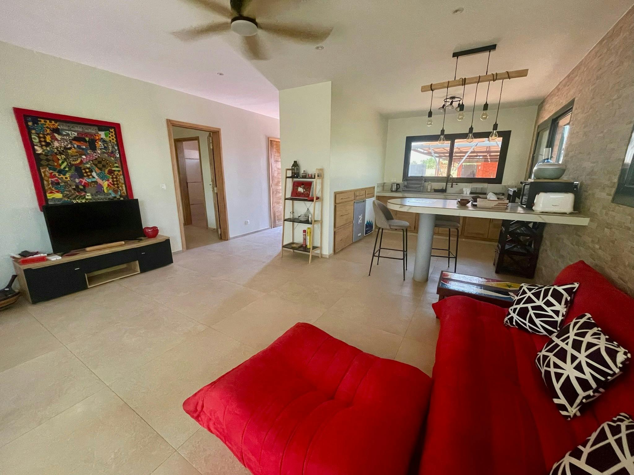 Guests also have access to the shared 20-meter pool and jacuzzi, located next to the main villa. Quiet, intimate, and surrounded by nature—this is your private oasis on the Petite Côte.