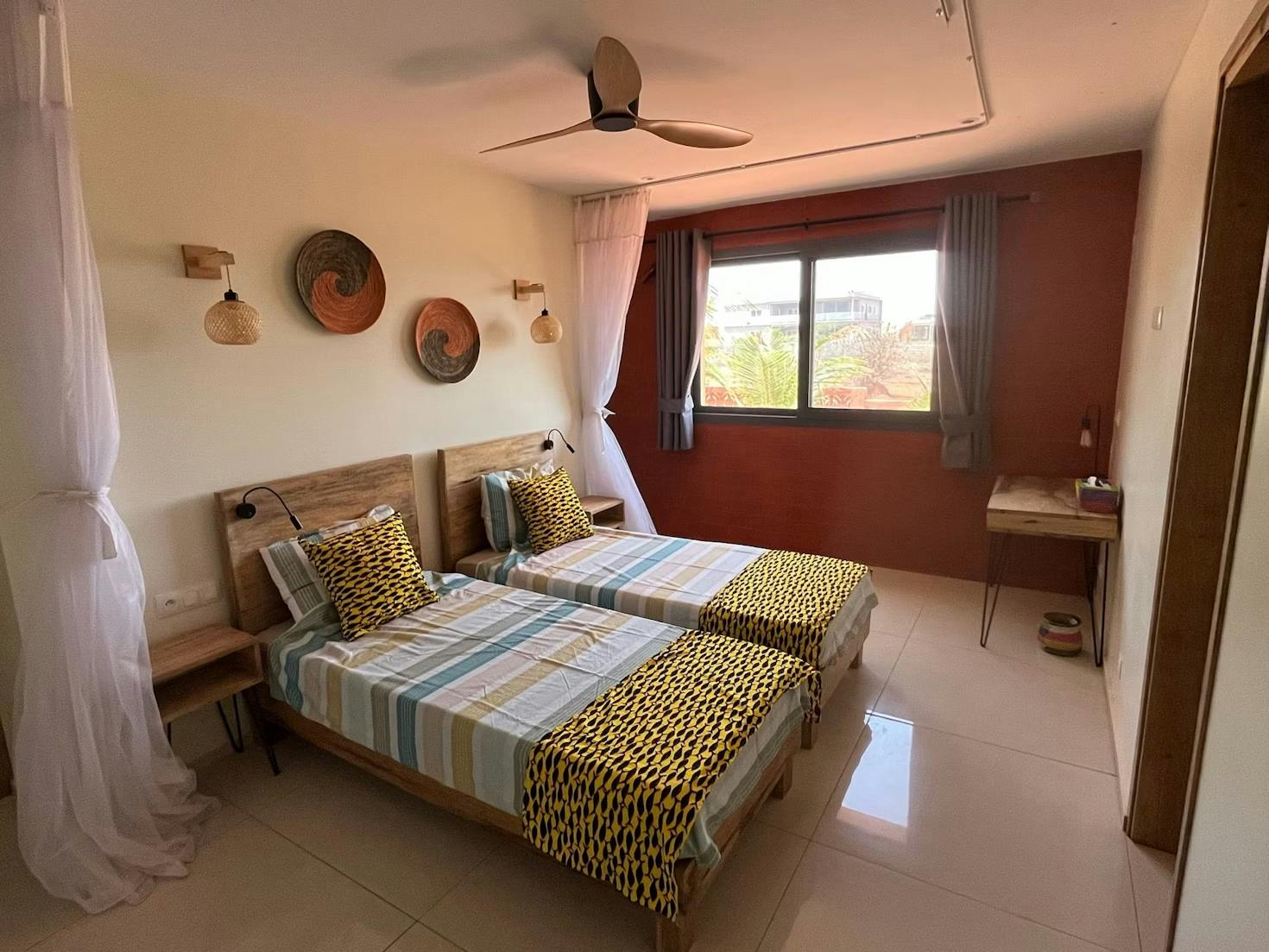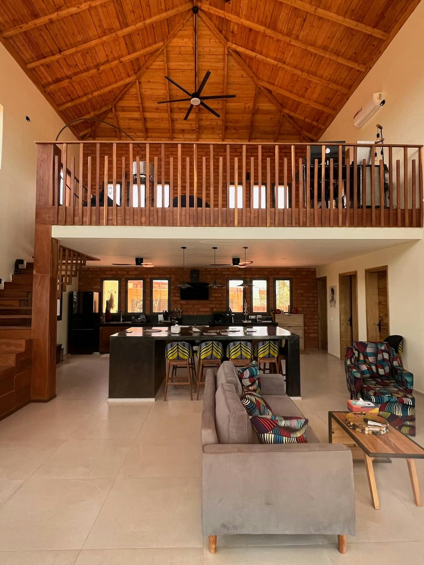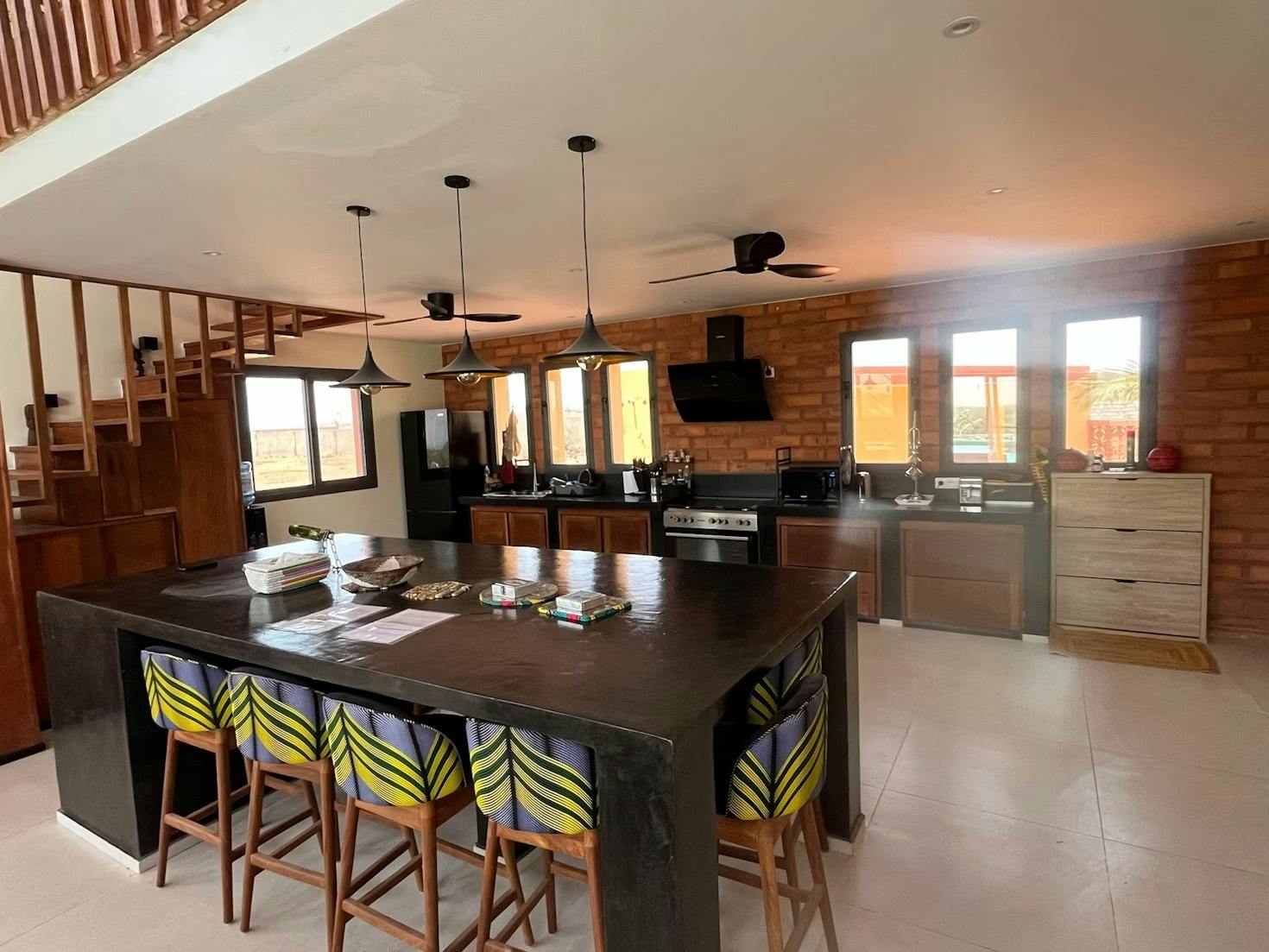Private One-Bedroom Villa with Rooftop Terrace For couples or solo travelers looking for peace, comfort, and privacy, our private one-bedroom villa is the perfect escape.This charming 70 m² villa includes a fully equipped kitchen, a bright bedroom, and a bathroom with double showers—ideal for unwinding after a day at the beach or exploring the area.The highlight? A private rooftop terrace with open views of the surrounding landscape—perfect for morning yoga, stargazing, or sipping a quiet glass of wine at sunset.Guests also have access to the shared 20-meter pool and jacuzzi, located next to the main villa. Quiet, intimate, and surrounded by nature—this is your private oasis on the Petite Côte.The Entire Estate – Full Private Rental of Both Villas Planning a family reunion, a retreat, or a stay with friends? Take over the entire estate, combining both villas for the ultimate in space, comfort, and exclusivity.Together, the two villas offer 8 bedrooms, multiple kitchens, expansive living spaces, and stunning 360° views of the lagoon, the Atlantic, and Guereo village.The main villa includes a dramatic open-plan living room, a fully equipped kitchen, and direct access to a 20-meter pool and jacuzzi. The smaller villa adds an extra layer of privacy with its own kitchen, double-shower bathroom, and rooftop terrace.Enjoy complete access to the pool, the pétanque court, and the surrounding natural beauty. This is a rare opportunity to experience Senegalese luxury living in full privacy, with enough space for everyone to feel at home.The Luxury Loft – Main Villa (2 Bedrooms) Discover our stunning Luxury Loft, part of a villa nestled in the heart of the Senegalese countryside, offering 360-degree panoramic views of the lagoon, ocean, and the peaceful village of Guereo.This spacious loft is perfect for a family, small group of friends or 2 couples, offering 2 bedrooms, each with its own private en-suite bathroom and breathtaking views of the pool, lagoon, or ocean. Can accommodate up to 6 guests with 3 in each bedroom or possibility to have 2 person sleeping on the mezzanine.Enjoy the expansive open-plan kitchen and relax in the dramatic 9-meter-high living room, which opens directly onto a 20-meter pool and jacuzzi. These outdoor spaces are shared only with one other small villa. A pétanque court is also available for guests.Whether you're cooking, swimming, or simply watching the sunset over the mangroves, the Luxury Loft offers space, elegance, and serenity.Deluxe Double Room 1 with Pool View Located on the ground floor of the Main Villa, just a short walk from the main activity, this room offers the perfect balance between easy access and tranquility.Authentic Decor: Experience the Senegalese character in the private bathroom, adorned with a striking red brick wall echoing the local earth. A unique detail for an immersive experience.Window onto peace: Enjoy a soothing view of the pool terrace and the gardens, bathed in the light and soft colors of the surrounding nature (baobabs, palm trees). Its slightly more discreet location ensures welcome quietude.Privileged Access: You benefit from direct access to the terrace, the magnificent 20-meter pool, and its jacuzzi (shared spaces).Leisure: The bar and the pétanque court remain easily accessible for your moments of serenity and Senegalese charmDeluxe Double Room 2 with Pool View Escape to an oasis of tranquility via this tranquil getaway, located just 500m to the lagoon, and 1.5km to the sea. Wake up to soothing sounds of nature and birds as you are surrounded by baobabs, palm, and mango trees. This room offers views of pool terrace, and nature and access to shared facilities including 20-meter pool, jacuzzi, and the pétanque court. There's also a spacious rooftop terrace, 2nd floor terrace for activities such as yoga, bbq or evening drinks overlooking the sea during sunset.Enjoy absolute comfort and spectacular views of the ocean and the shimmering lagoon at our lodge. Book your tranquil escape now and let the rhythm of the Senegalese nature and warm hospitality redefine relaxation.Deluxe Double Room 7 with lagoon, sea & garden view Escape to an oasis of tranquility here, which is 500m from the lagoon, and 1.5km to the sea. Located on the upper floor of the main villa, this suite is undoubtedly the room for panorama lovers. It is designed for wonder and serenity.Sea, lagoon and garden view: Treat yourself to the luxury of a stunning 180-degree view of the lagoon and the Atlantic Ocean that you can admire directly from your bed and balcony.Unforgettable sunset: Every evening, the sky puts on a show for you with superb sunsets, painting the horizon in warm colors—a breathtaking visual experience.Private terrace: Enjoy absolute tranquility on your private terrace, the perfect spot for a morning beverage or an evening drink facing the sea. We also have the hammock for those who want to laze outdoors.Premium comfort: The room features a private bathroom. The restaurant is conveniently located on the same level.Shared facilities: You'll have access to shared facilities including 20-meter pool, jacuzzi, and the pétanque court. There's also spacious rooftop and 2nd floor terrace for activities such as yoga, bbq or simply sitting with your drink at hand to admire the nature all around.Deluxe twin room with courtyard view near lagoon & sea This room within the main villa is located just 500m to the lagoon, and 1.5 km to the sea.Located on the ground floor of the main villa, room 3 is ideally positioned in our "family zone," with rooms nearby.The Family Choice: This room is perfect for children or friends when parents occupy Room 1 or 2. Its proximity to Room 4 also allows larger groups of friends, or children to stay nearby.Sleeping Flexibility: Perfectly adaptable to your needs, it features 120 cm twin beds that can be separated or easily combined together to form 1 large double bed for a couple.Courtyard view: Overlooking the back co